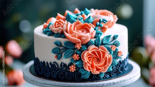 Intricate 3D Floral Cake with Colorful Icing Design