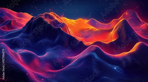 Intricate and mesmerizing digital artwork featuring mountains, peaks, and a cosmic background.