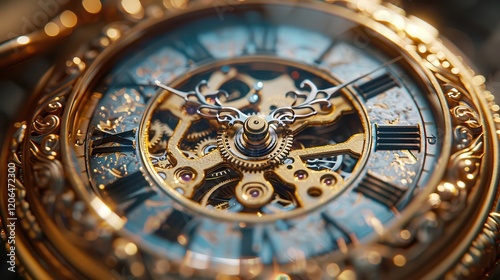 Intricate Antique Pocket Watch Mechanism: Golden Gears and Roman Numerals in Close-up