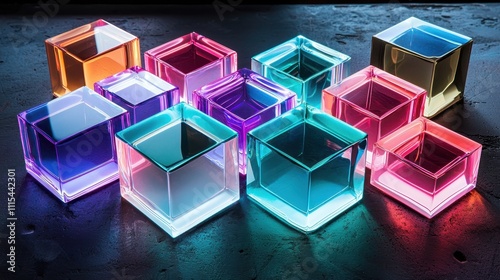Intricate Arrangement of Hexagonal and Diamond-Shaped Colorful Blocks on a Dark Surface