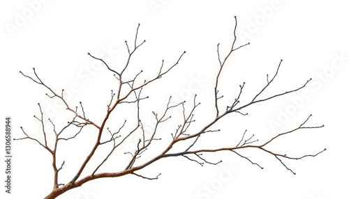 Intricate, bare branches isolated against a pure white backdrop, close-up, graphic design