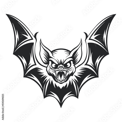 Intricate Bat Vector Graphic: Detailed Illustration of Flying Mammal with Aggressive Expression, Stylized Wings, Isolated on White Background for Halloween and Horror Themes