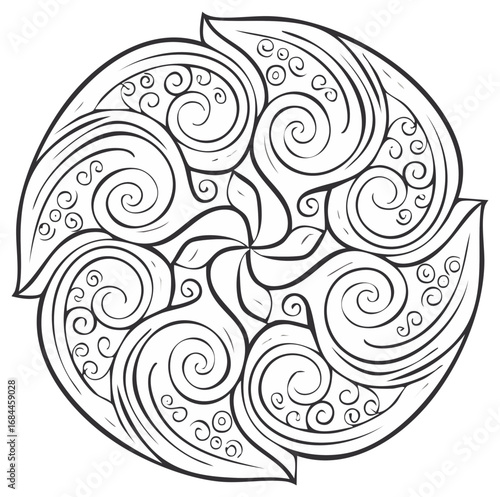 Intricate Black and White Celtic Knot Mandala Design with Swirls and Scrolls