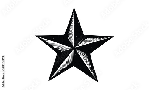 Intricate black and white five-pointed star design on white background. Vector retro hand drawn illustration