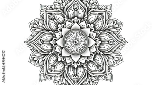 Intricate Black And White Mandala Drawing On White Background
