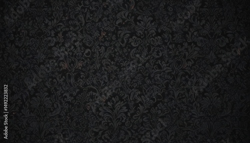 Intricate black damask wallpaper, seamless gothic floral vines , floral, scroll