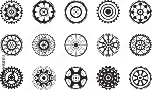 Intricate Black Gear Mandalas – Steampunk Symmetry Vector on White Canvas