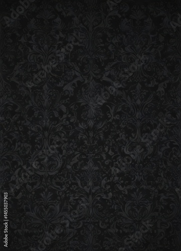 Intricate black gothic damask, shadowy details, repeat, seamless, sophisticated