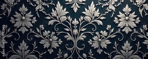 Intricate charcoal grey floral damask pattern, room, wallpaper, subtle