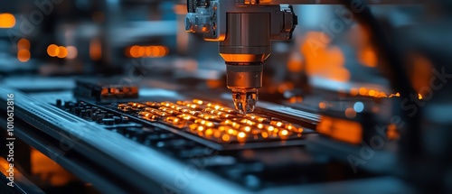 Intricate closeup of electric vehicle battery cell assembly, capturing the complexity and sophistication of the mass production process