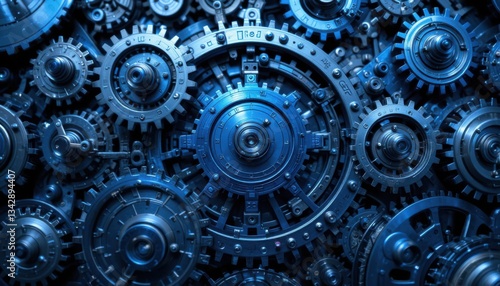 Intricate Cobalt Blue and Silver Gears A Holographic Mechanical Composition