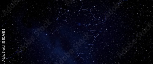 Intricate cosmic constellation map on dark night sky, stars shine brightly, art, image