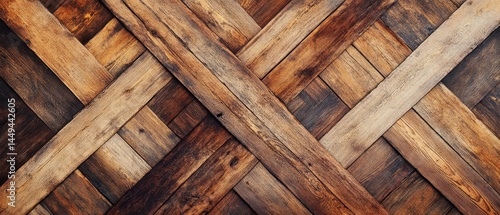 Intricate crisscross pattern of aged wooden planks.