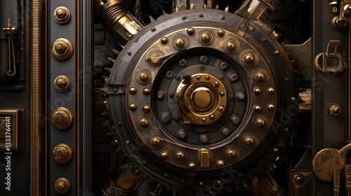 Intricate Detail of Antique Safe Lock Mechanism with Brass Finish