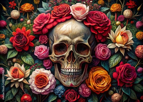 Intricate Drawings of Skulls and Roses Illustrating the Beauty of Life and Death in Artistry