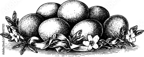Intricate easter ornament with eggs, ribbons, and floral details for festive decoration