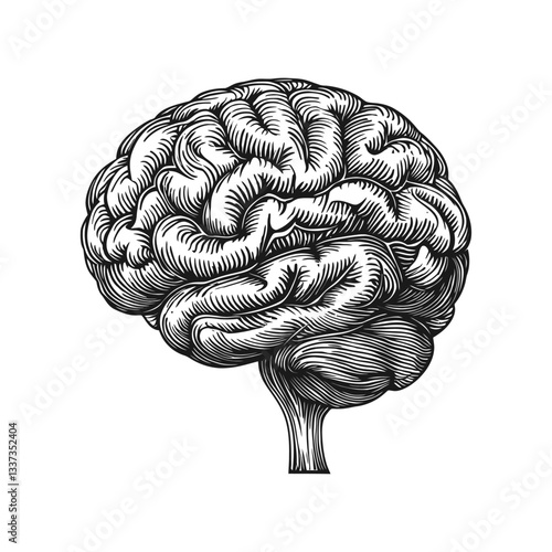 Intricate Engraved Illustration of a Human Brain in Profile View