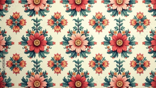 Intricate floral damask pattern in muted tones, seamless pattern, pastel