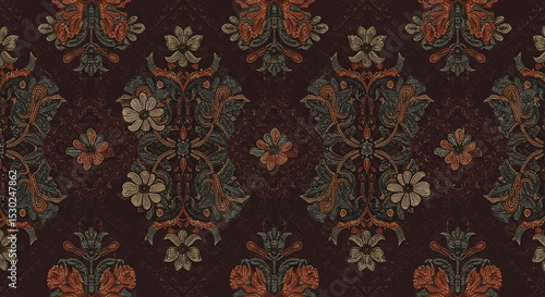 Intricate Floral Pattern with Detailed Dark Colors and Repeating Symmetry