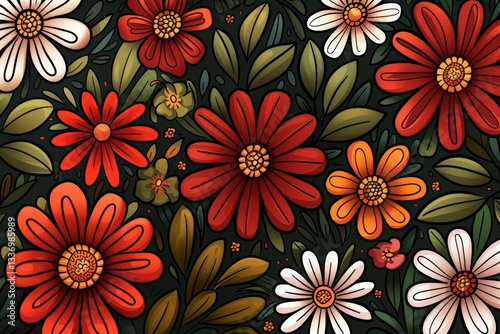Intricate floral patterns with buds on a vibrant background for enhanced textural appeal