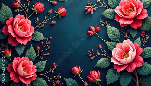 Intricate floral tapestry wallpaper, rich jewel tones, damask, art, repeating