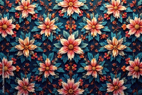 Intricate floral textile design, repeating motif , background, pastel