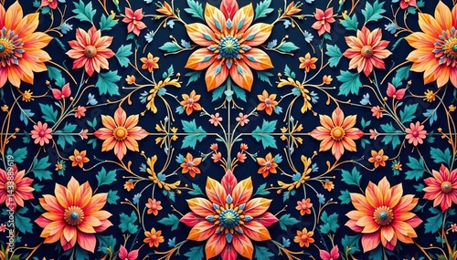 Intricate floral textile design, repeating motif, elegant, textile design, floral