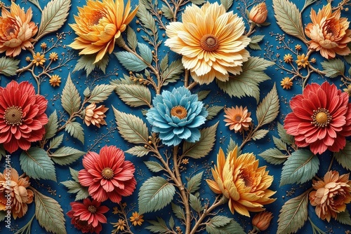 Intricate floral textile with repetitive motifs , repeating pattern, nature
