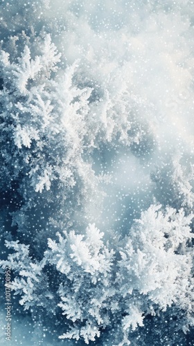Intricate frost patterns and soft shadows on a dense snow texture for a serene winter wallpaper
