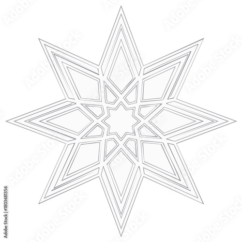 Intricate geometric eight pointed star with symmetrical line art pattern