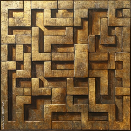 Intricate Geometric Gold Relief Wall Art