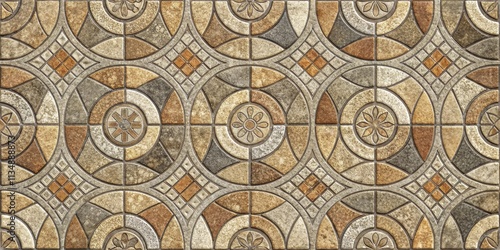 Intricate Geometric Tile Pattern in Earthy Tones, Featuring a Seamless Design of Circles, Arcs, and Diamonds