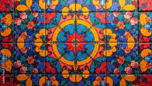 Intricate geometric tile pattern, vibrant colors, seamless, texture, pattern