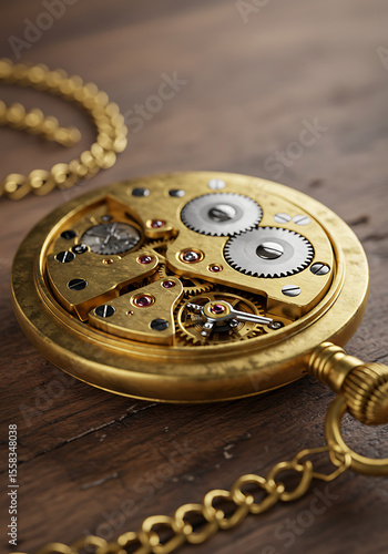 Intricate Gold Pocket Watch Mechanism Detailed Close-Up
