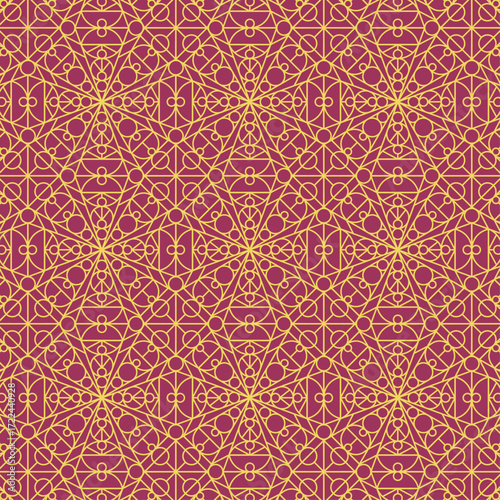 Intricate Golden Geometric Pattern on Deep Red Background - Seamless Repeating Design