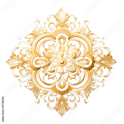 Intricate golden ornament with floral patterns perfect for decorative arts and designs.