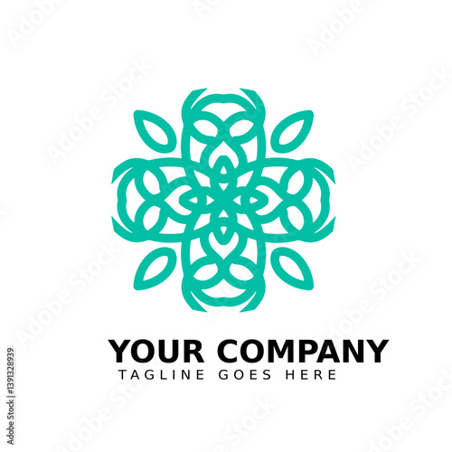 Intricate green logo with interlocking floral shapes