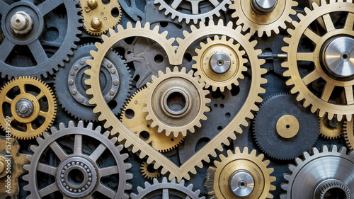Intricate heart shape formed by interlocking mechanical gears and cogs