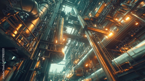 Intricate Industrial Facility with Pipes and Machinery in Perspective