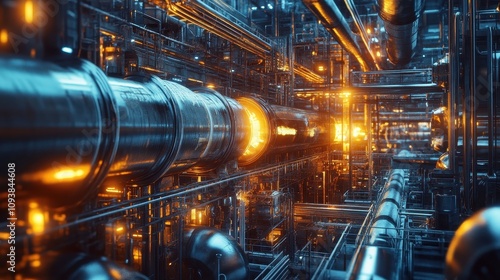 Intricate Industrial Pipeline System Glowing Brightly