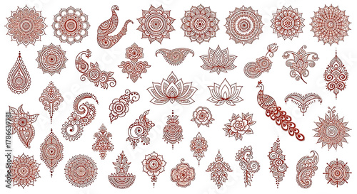 Intricate, isolated Mehndi PNG vectors for wedding design
