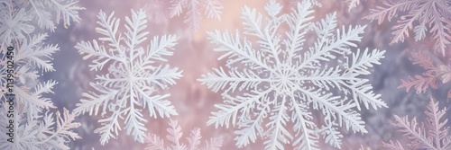 intricate lace pattern of snowflakes in soft pastel colors, winter wonderland, gentle breeze