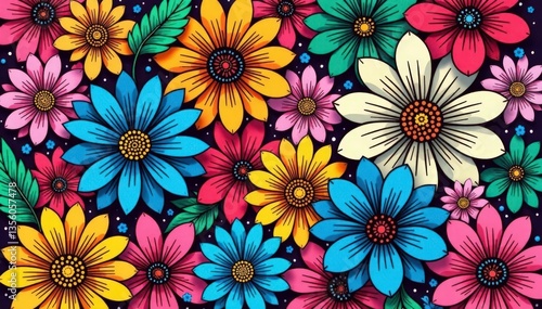 Intricate line art, densely packed blooms, geometric , design, print, elegant