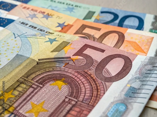 Intricate Macro Photography of Euro Banknotes Showcasing Fine Details and Textures, Perfect for Financial Themes and Educational Purposes in Stock Imagery