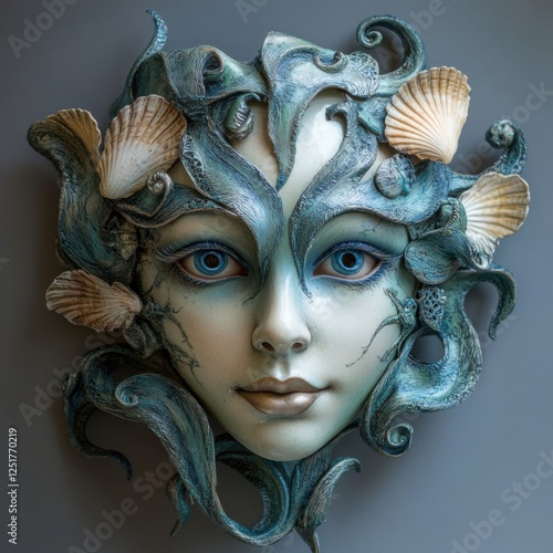Intricate Mermaid Sculpture with Shells and Ocean Elements
