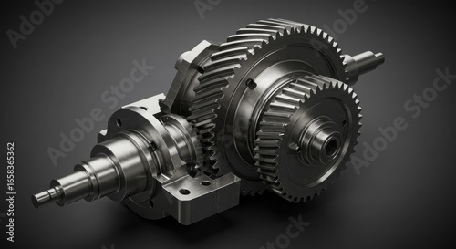 Intricate metal gearbox assembly showcasing precision engineering and complex mechanical movement, perfect for industrial innovation and automotive design concepts