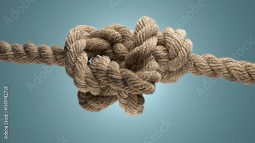 Intricate Natural Fiber Knot Against a Serene Blue Backdrop