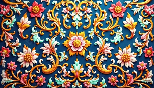 Intricate paisley pattern, swirling vines & floral motifs, illustration, element