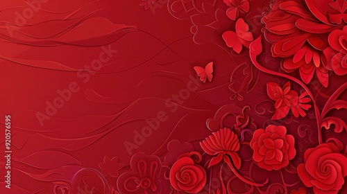 Intricate Paper Cuttings Showcase Red Love Greeting Card Design, Traditional Craftsmanship with Romantic Background, Perfect for Valentine's Day Celebration