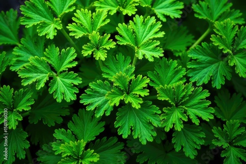 Intricate parsley leaf pattern, vibrant green hues, texture, food